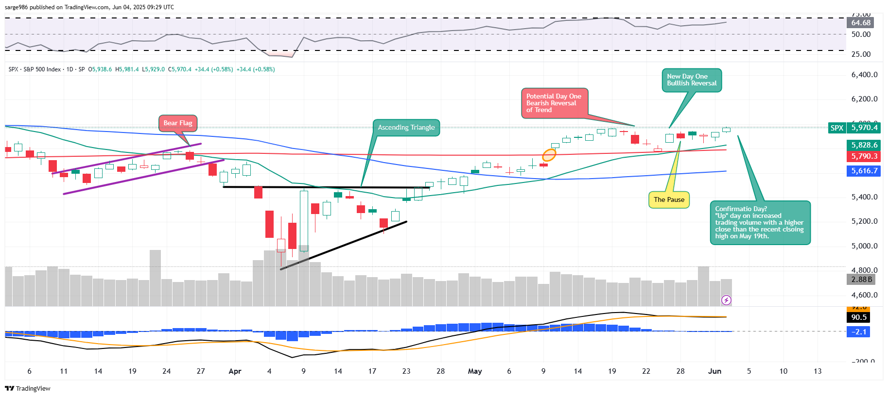 Readers will see that on Tuesday, the S&P 500 traded higher on increased trading volume, breaking the pause, and closed above the recent closing high of May 19.
