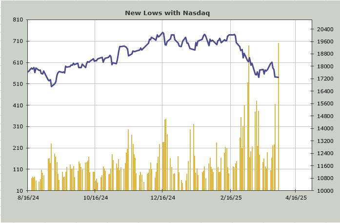 Now let me point out that Nasdaq did not see a positive divergence in that the number of stocks making new lows crept up over 700 vs mid-March’s reading of 688. The good news is that the NYSE did see a positive divergence with 276 new lows vs. 289 in mid-March, so it was a squeaker.