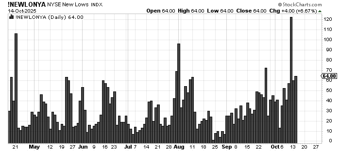 Away from that, none of the indicators change. I would note, however, that both the Nasdaq and the S&P came down to the area of Friday’s low and we did not see an increase in stocks making new lows. That is the first time in weeks that we have not seen an increase.