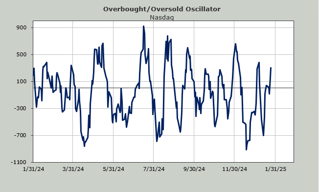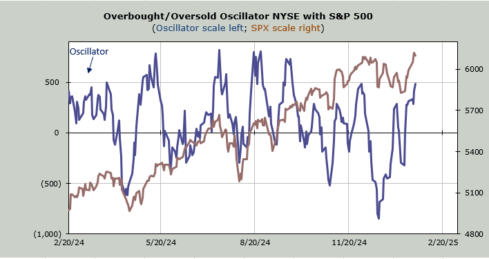 As we head into this week my Overbought/Oversold Oscillator will get maximum overbought. Monday is the key day where we will see if this can get up and over 500 in a meaningful fashion. Up and over is an intermediate term positive because it gives this momentum indicator a higher high than it had in December.