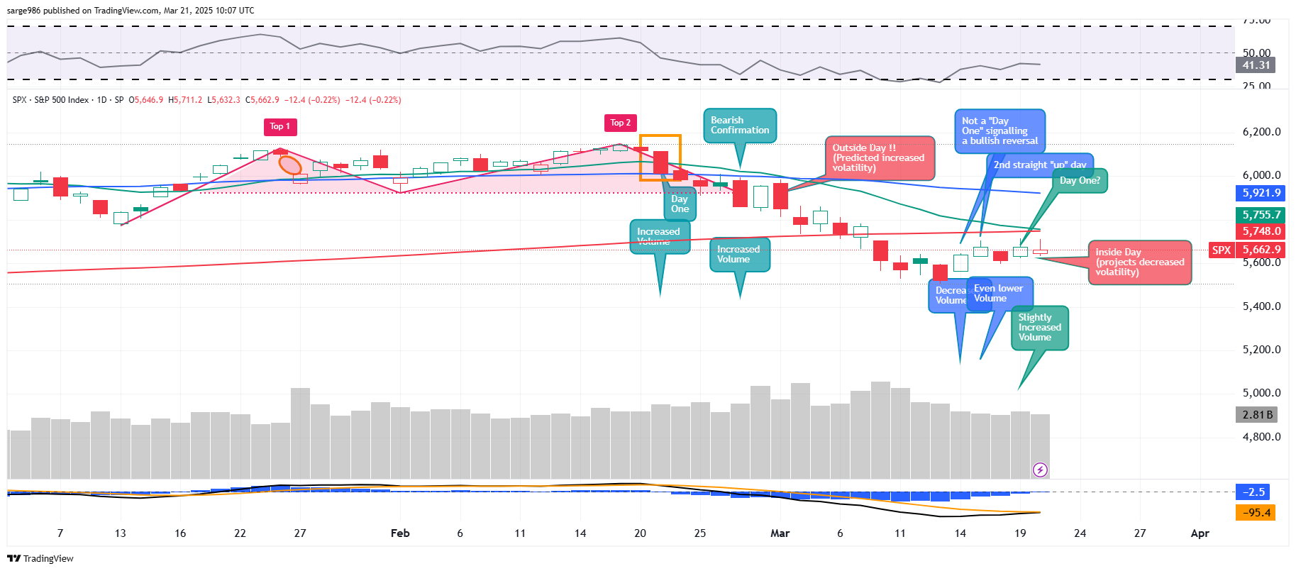 I had warned readers at the time that the "Outside Day" of March 3 very likely signaled a coming period of increased volatility and that was exactly what we got. Inside Days signal just the opposite, a coming period of reduced volatility. This "Inside Day" came one day ahead of a day where a sharp increase in trading volume is expected. That is what I find interesting. A Friday nothing burger? We should be so lucky.