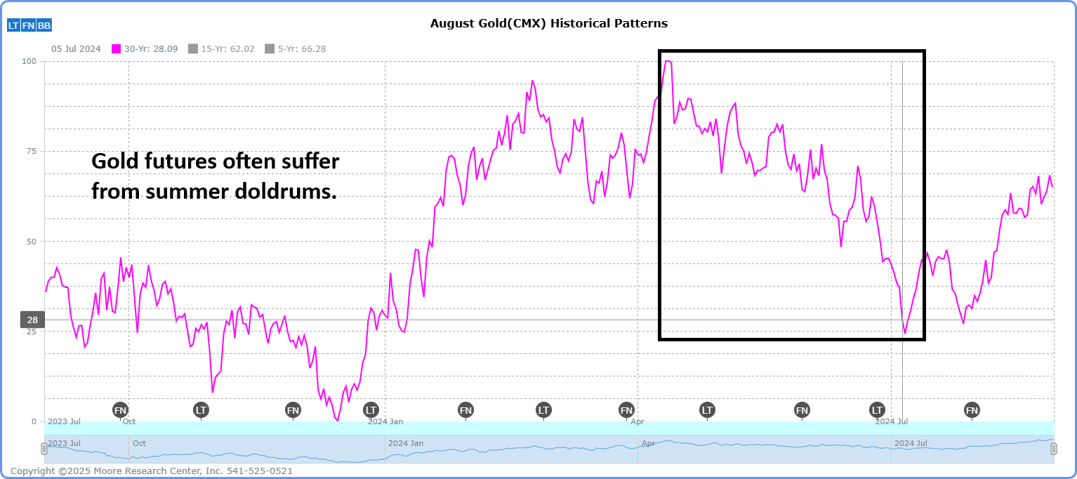 On the contrary, the gold market often peaks in April and suffers from summer doldrums through August. In fact, many of the most notable collapses of precious metals have taken place in the heat of summer.
