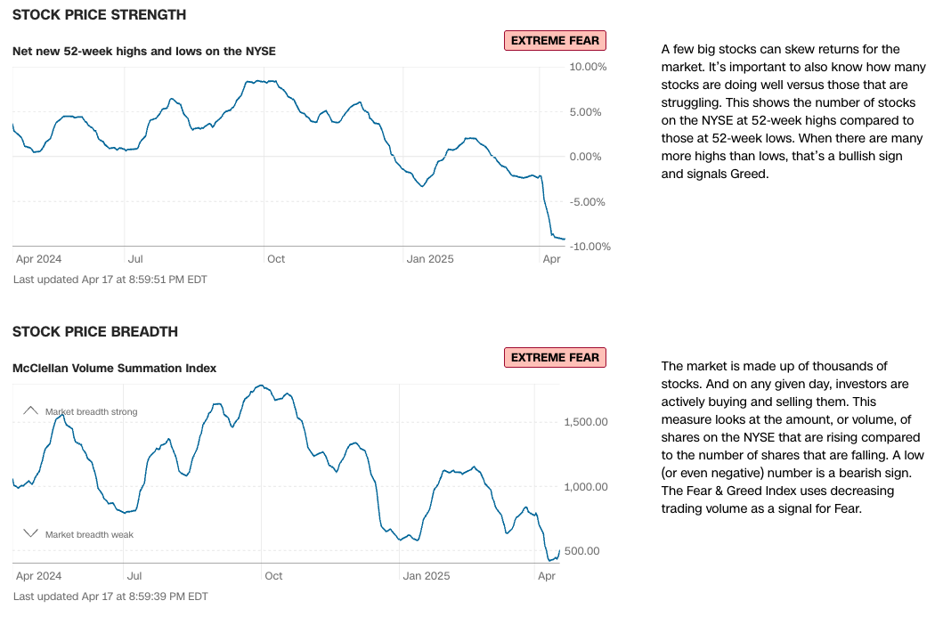 I’d also like to see Fear & Greed’s two breadth indicators, Net New 52-week Highs and the McClellan Volume Summation Index, turn upwards. They’re both stuck in the basement with Extreme Fear right now.