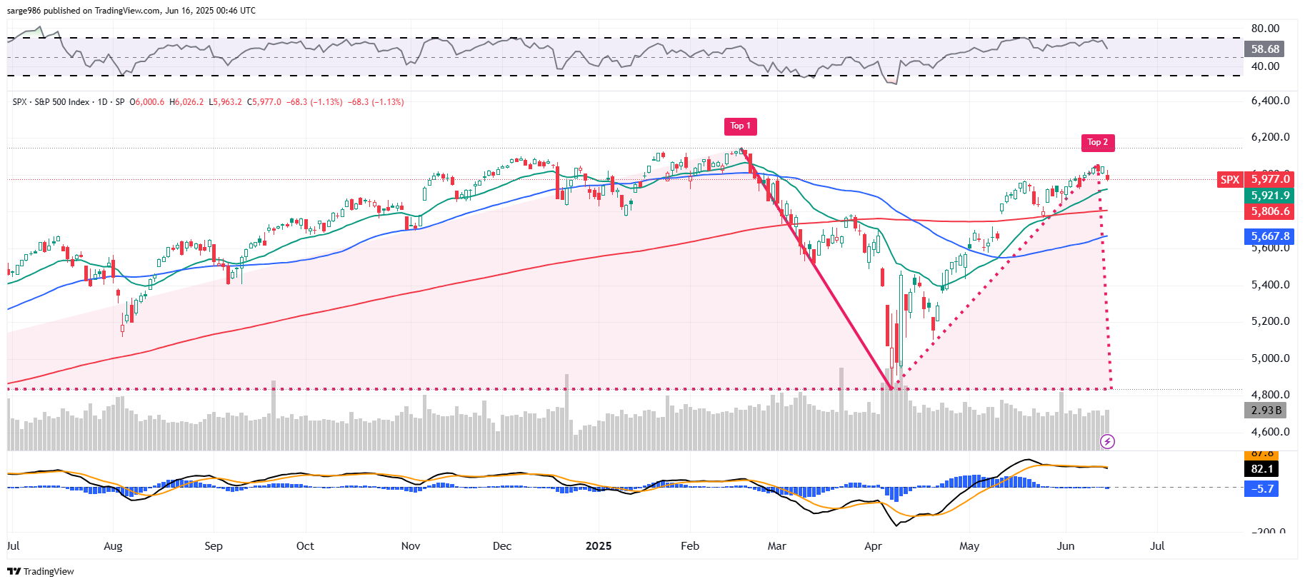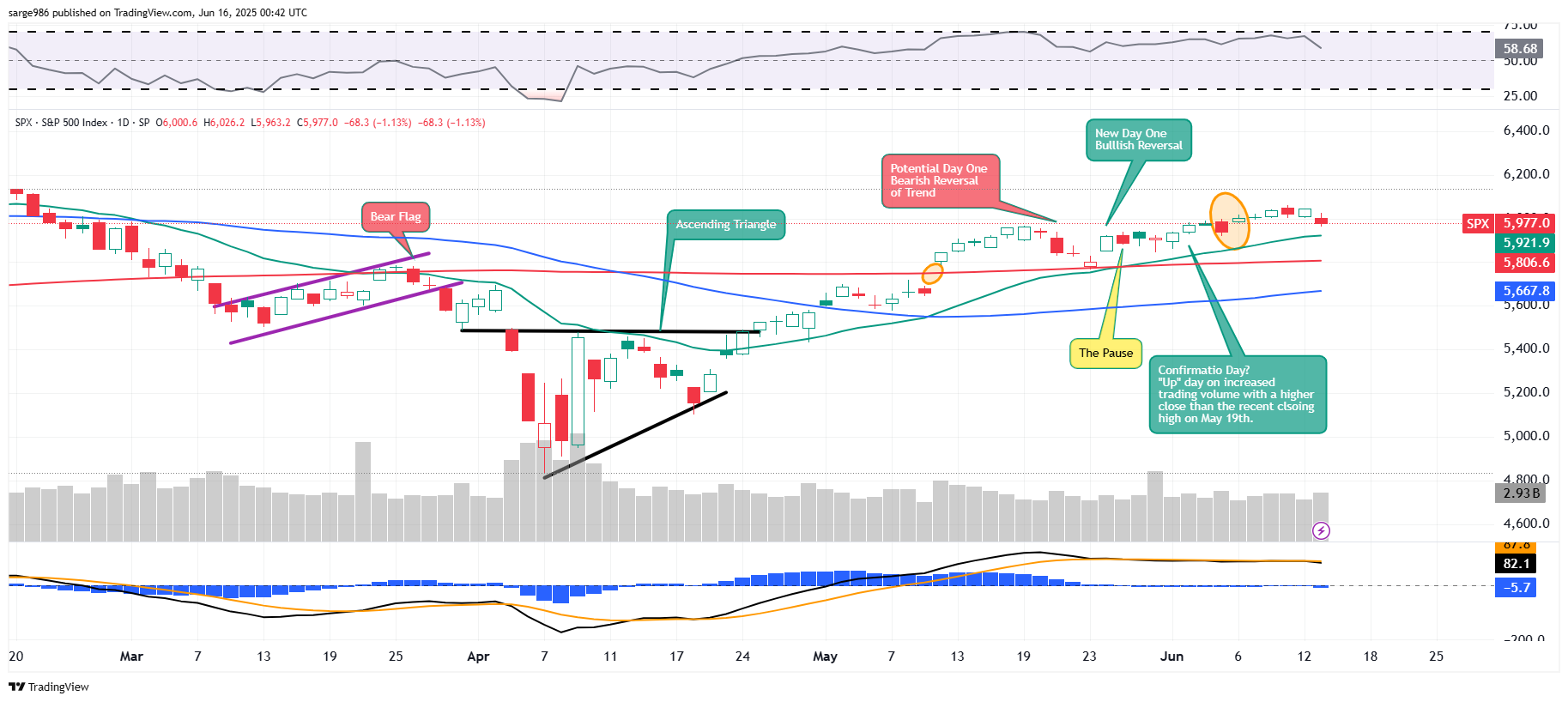 Now, that's a horse of a different color, isn't it? Nobody likes to see a Double Top pattern of bearish reversal appear to come to fruition while one nation bombs another nation's nuclear facilities while that second nation may or may not have the ability to shut off the flow of a third of the planet's liquified natural gas and a quarter of the planet's crude. To quote the fictional Alfred E. Neuman: "What, Me Worry?"