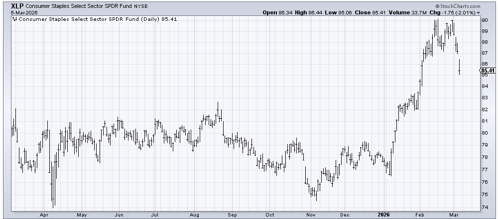 Sure, I said earlier in the week that I did not like XLP, the ETF to be long the staples, but did I expect such violence on the downside? And such violence with the S&P still firmly clinging to 6800? No way.