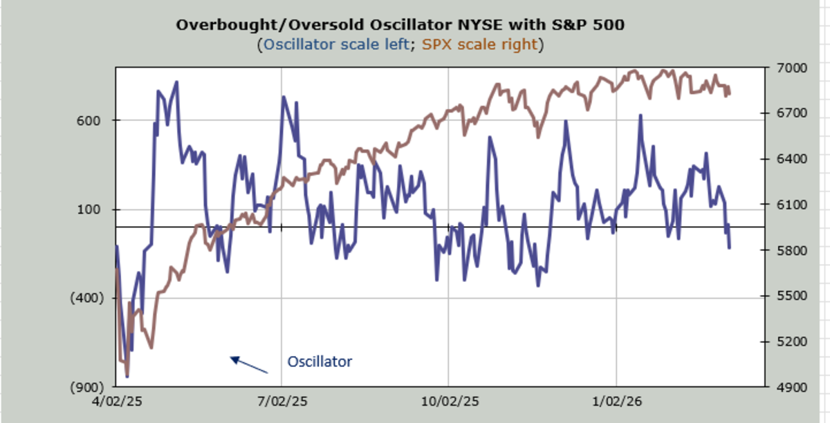 Instead, we had violent moves to the upside in so many stocks except growth names. Growth names crumbled. And the S&P stayed put. In fact, we had had a wide range (6500-7000) as we entered the year, and it got even narrower as the calendar turned to 2026, with the lower end of the range lifting to 6800.