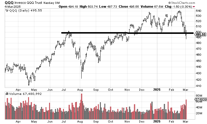 Is it possible that despite all my short-term indicators—okay, not all but most—saying we are oversold enough to rally, we don’t/can’t rally? Sure, it is possible. Nothing is perfect. And I would remind you of the chart I posted here a few weeks ago from March of 2002 when then President Bush instituted steel tariffs, and the market cracked and headed south for four months.
