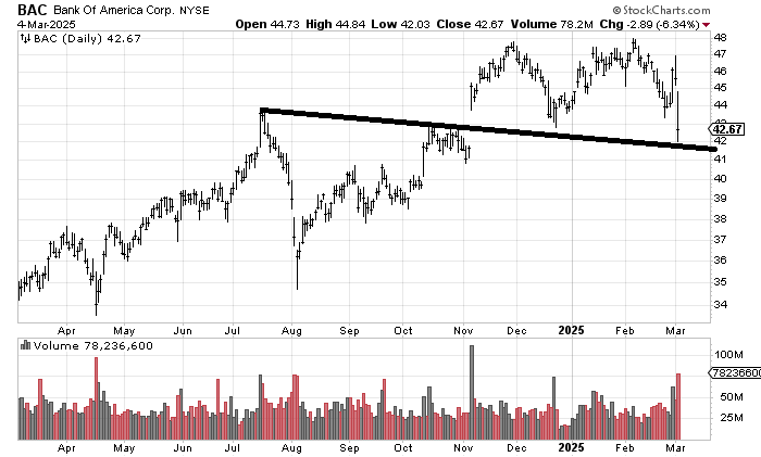 Much of that volume was in the financials. For example, Bank Of America (BAC) traded 78 million shares, the most since the gap up after the election. I do not like the chart, but it did fill that gap, and it does have some support here. But the point really is there was some size selling on Tuesday.