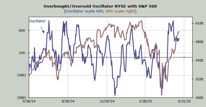 Breadth was actually okay in that net breadth on the NYSE was -325. The McClellan Summation Index is still rising. It now requires a net differential of -1700 advancers minus decliners on the NYSE to halt the rise. That remains a decent cushion, meaning we can have a few days of negative breadth and the indicator can still rise. Once that number gets under -1000, I consider the cushion to be small because one harsh down day can change the indicator’s direction.