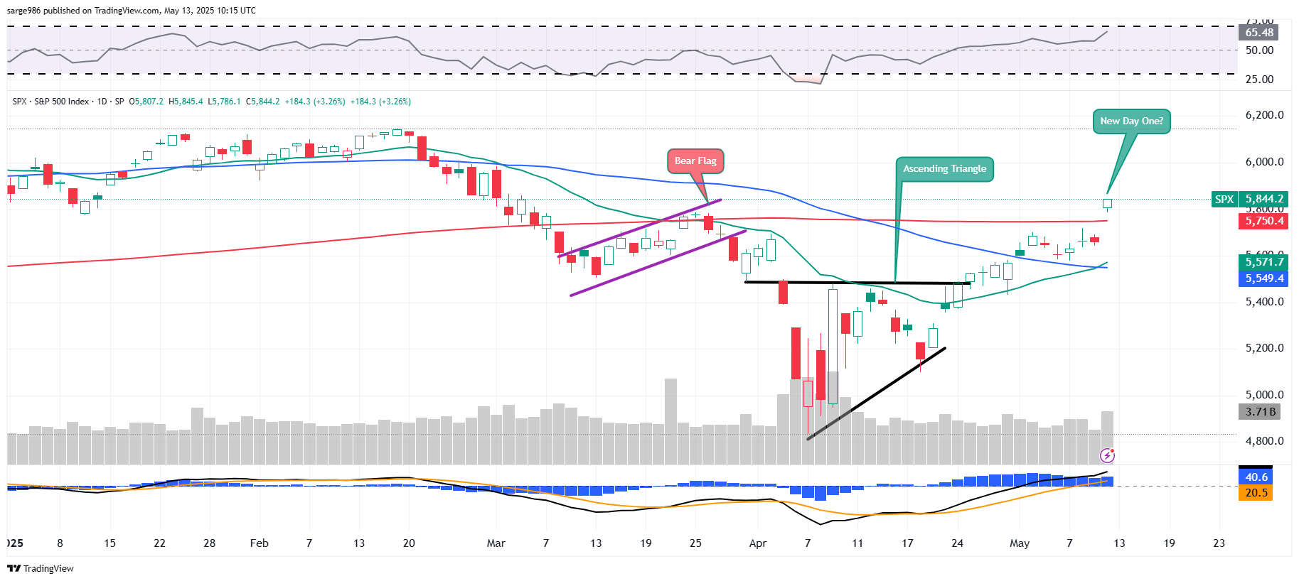 What was that? Monday was a rally for the ages, and so very technically predictable. One just has to love when a path forward is so well lit, and market behavior has been as easy to read as this one has been for traders and investors for almost two months now. It's usually at times like this that I jinx myself, and I hope I don't, but literally every single technical signal sent by this market since before the president's "Liberation Day" has worked like a charm.
