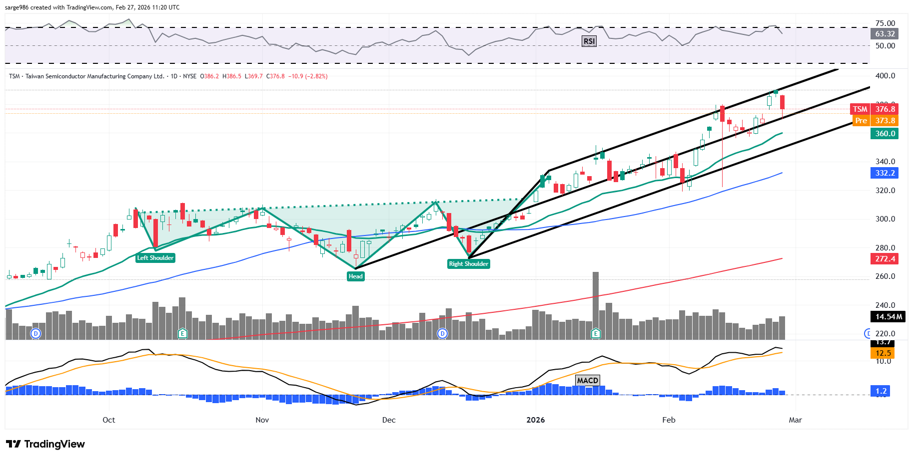 For those who follow me but did not follow me all the way to Doug's Diary on Thursday. Taiwan Semiconductor (TSM) apexed at $390 on Wednesday, taking out our $377 target price (that I gave you in mid-January), but was damaged in the Thursday beatdown that hit the industry. Remember, we always act at target prices.