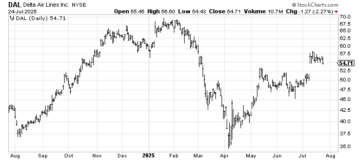 I am sure there are plenty of stocks that have gapped up and held the gaps up better than Delta but when I read that the beat rate on earnings is over 80% and I see so many stocks gap down —big gaps— I am of the mind that the beat was either too easy or the stock was priced for a better beat.
