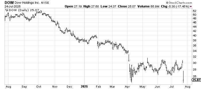 Quite frankly, Dow Inc. DOW shocked me because lately these down and outers have been doing well. But look at that gap down: 17%! Oh sure, it’s back to the April low, but it barely went anywhere off it.