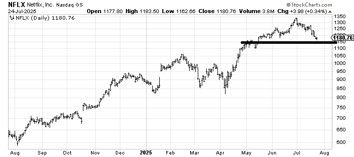 Then there is Netflix NFLX, which had a decent quarter. There are no gaps down here but the stock is down over 10% this month and is back to where it was in May.