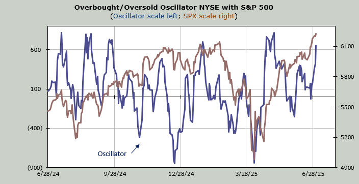 In neither case did the market just blast higher. Maybe this time will be different, but the Daily Sentiment Indicator (DSI) is now at 83 for the S&P, so that runway is feeling a bit short, especially if the market rallies on the Employment number Thursday.
