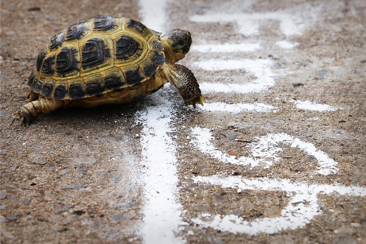 Here's an example. You know the story of the race between the tortoise and the hare? The hare is so confident that he naps just before the finish line... and loses to the slow tortoise!