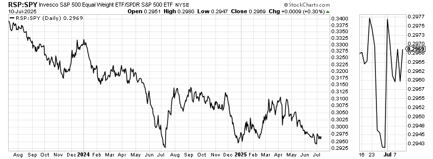 So, yes, the equal weight is doing better, but look how it zoomed upward in July last year. This is much more meandering, isn’t it?
