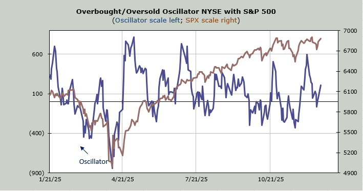 Rockets, Quantum, and metals were hot. Not hot enough to get sentiment to giddy, though. The Daily Sentiment Index (DSI) for the S&P is 68, and Nasdaq is 67. In late October, those readings stretched up over at the same time the DSI for the VIX was kissing single digits.