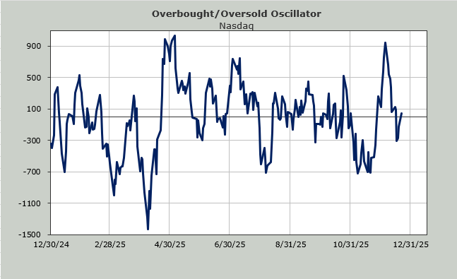 The DSI for the VIX is now 17, so I do wonder if, when the Santa Rally is over, will we see it back in that ‘tween’ zone? As a reminder, between 10-15 on the VIX without a high reading in the indexes, and I think it means expect volatility. A low reading in the VIX, coupled with a high reading in the indexes, and I’m thinking ‘giddy’. We’re still in the complacent stage, as best I can tell.