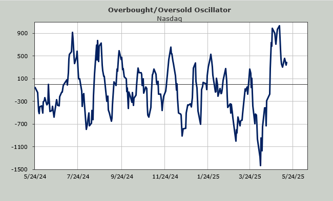 Aside from those changes, the McClellan Summation Index is still rising. The Hi-Lo Indicator for the NYSE is still creeping upward. The Nasdaq’s Hi-Lo Indicator is still upticking but has barely budged since doing so.