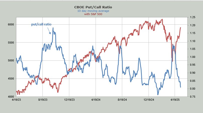 Meanwhile, the 10-day moving average of the total put/call ratio was 0.70 once again on Thursday (as it was on Wednesday). That means the 10-day moving average is now knocking on the door of 0.80. It doesn’t get down there very often. However, it has yet to turn back up. I figure one day of a reading in the 90s and it will turn up.