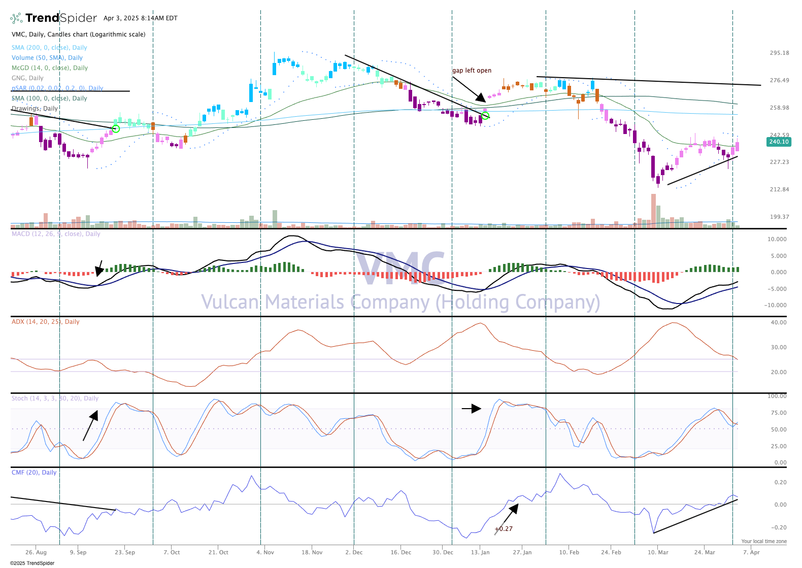 No question Vulcan Materials VMC has been hit hard. The 25% drop in February was on strong turnover, with big money managers cutting loose the stock as it appeared the tariff trainwreck would do some damage. It was a "shoot first, ask questions later" scenario by big money managers. However, the stock has value and it may be in the low $200's area where Vulcan finds buyer support.