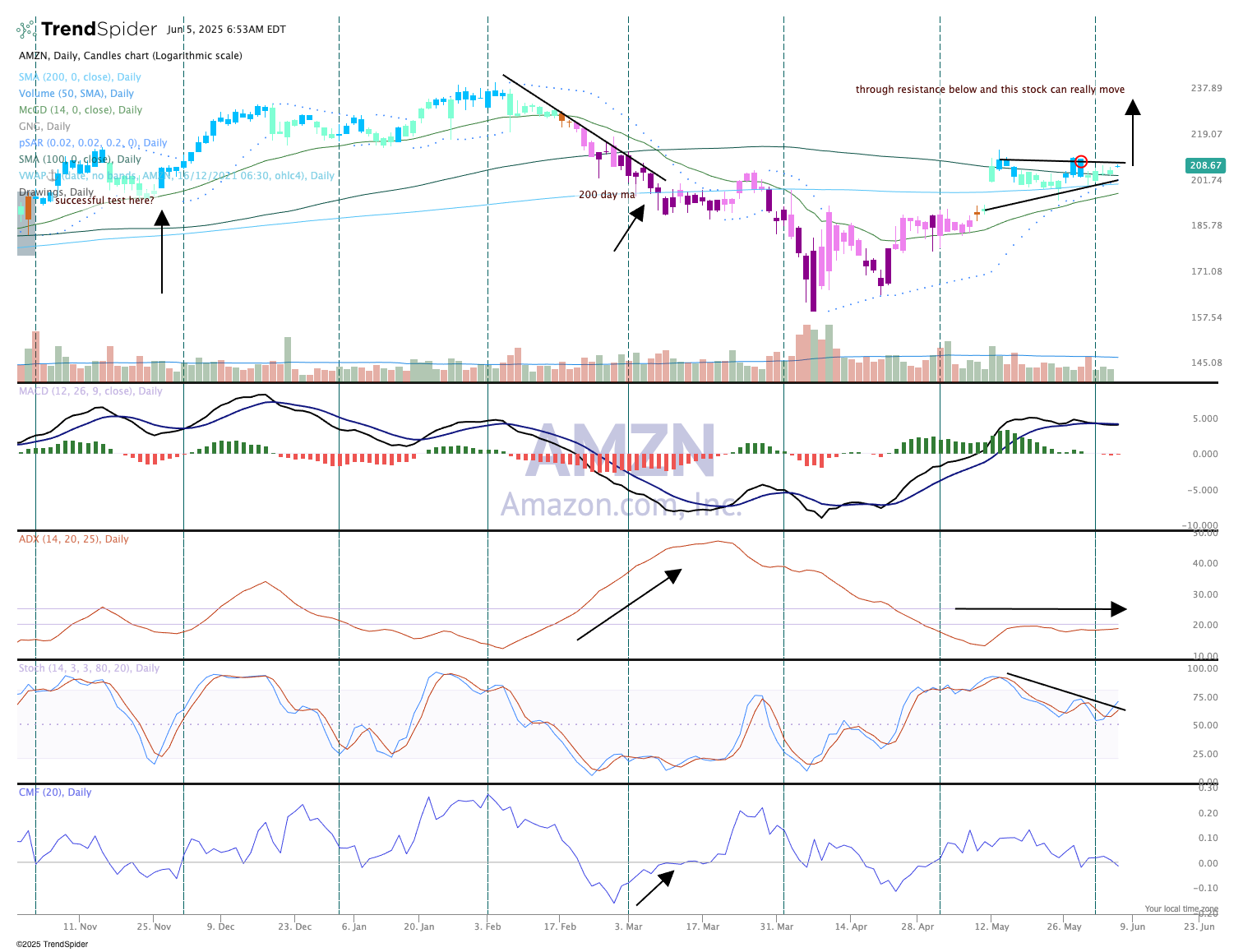 With retail sales in question this summer as the consumer appears to be pulling back on shopping for goods, we must look at Amazon AMZN for some clues. No question the company has a stranglehold on purchases online, and with some bullish seasonality coming up and the next big shopping event (likely in mid-July) it's encouraging to see the chart starting to get charged up.