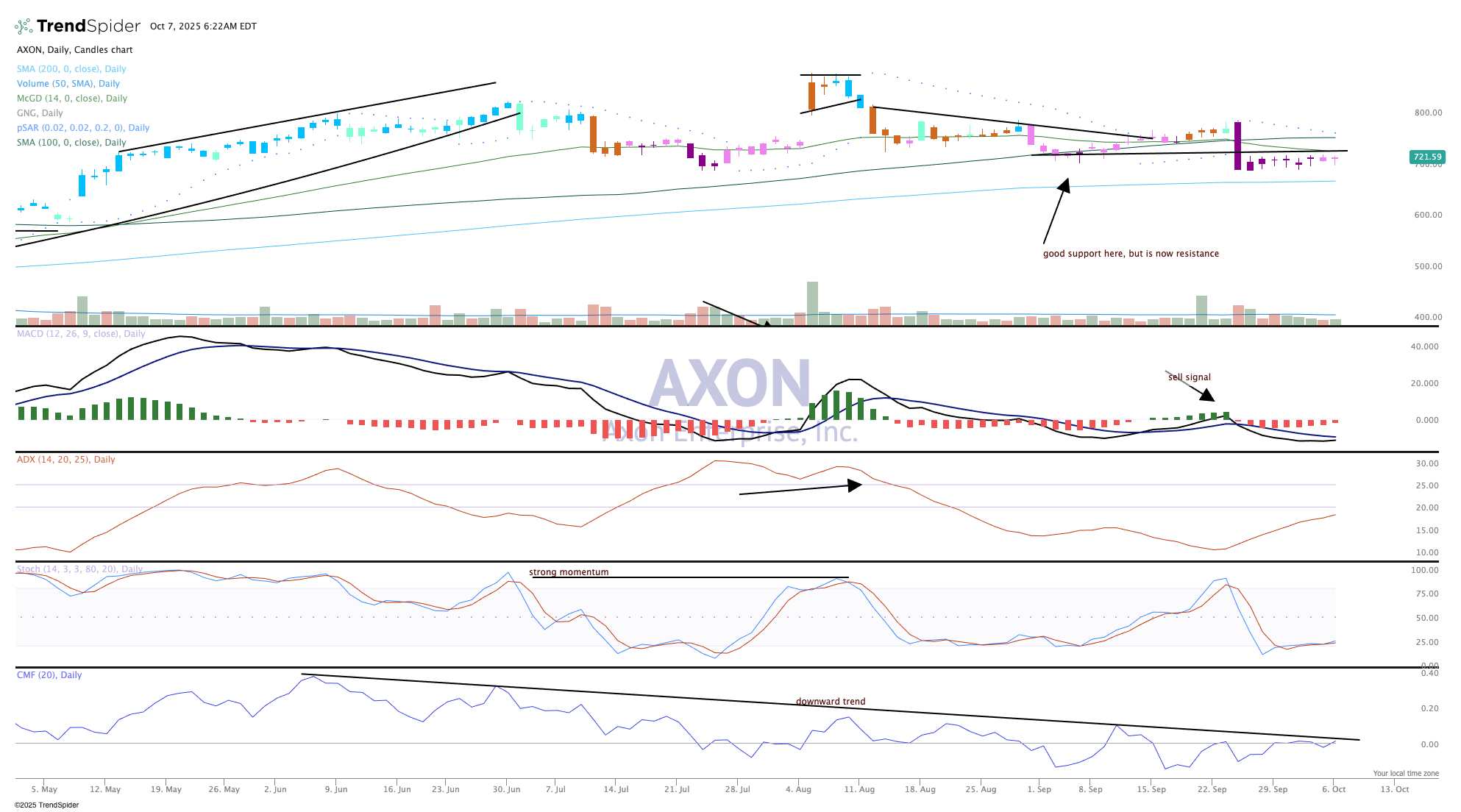 There is some worry about Axon Enterprise (AXON) as it relates to the chart and technicals.