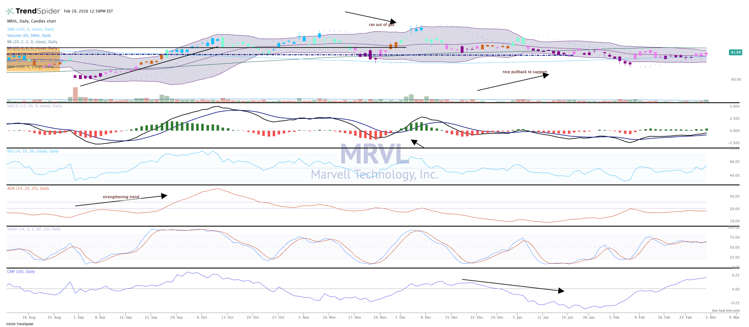 Marvell reports this week but the stock is rangebound, so let's check the technicals and compare with the last report's reaction.