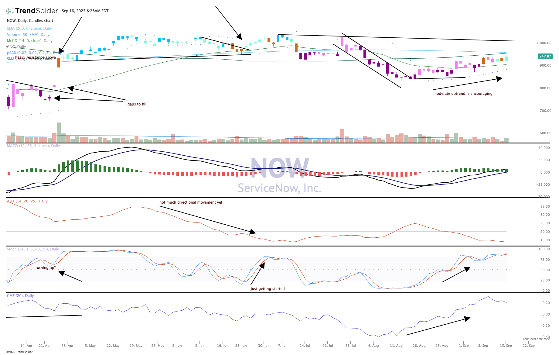 We have spoken before about the challenges of the ServiceNow NOW chart. As you recall, we noted a nice strong base from the spring that turned into a nightmare downtrend following its earnings release in July.