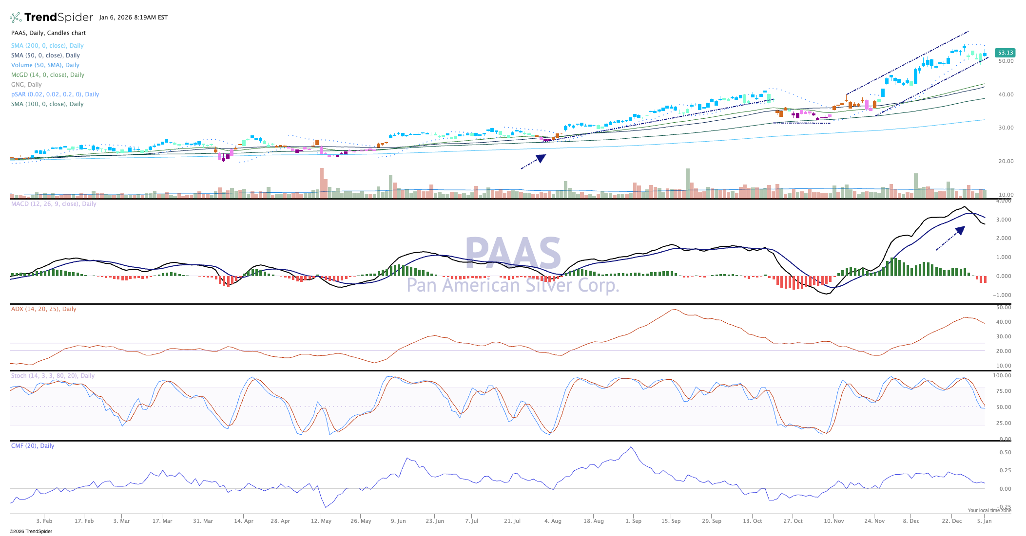 No question, the one commodity that has been watched closely of late has been silver, which ran past the old highs at $50 in 2025 and continues to look strong in the new year. Other silver miners have responded with upside but none have been better than Pan American.