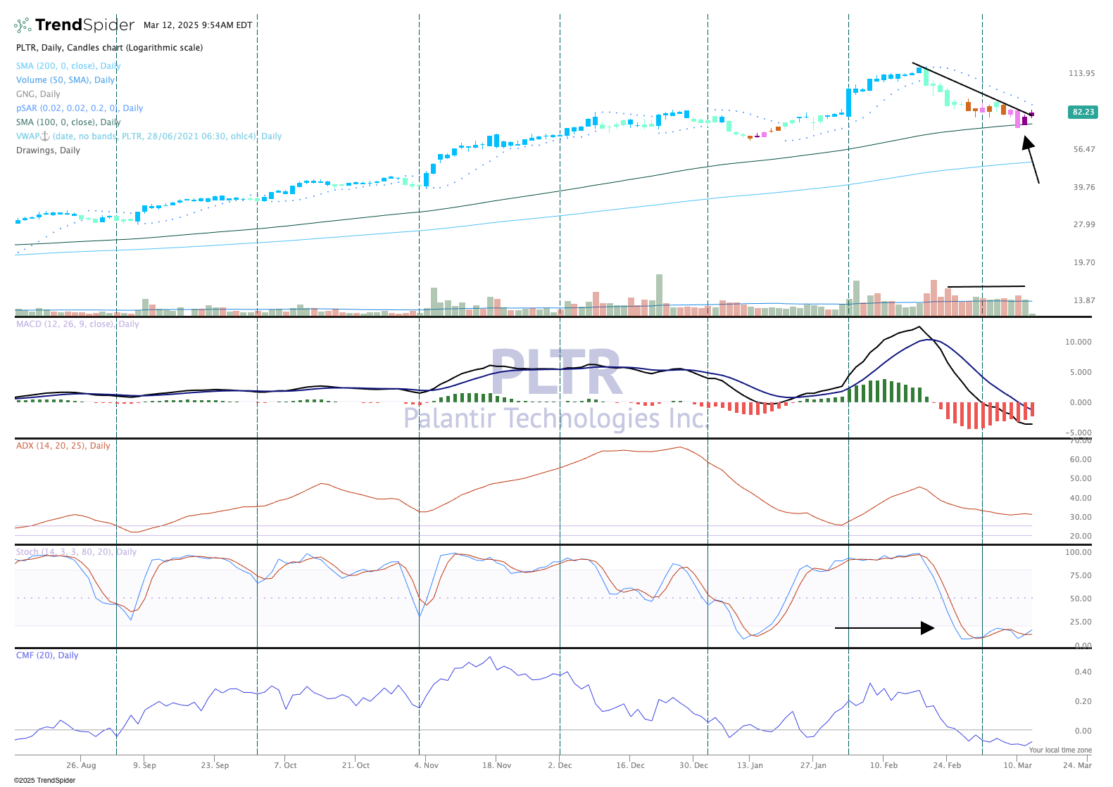 Make no mistake, the stock is challenged as indicators are solidly bearish. There's no question that Palantir has work to do, in fact, if the stock can build a base between $75 and $85, that would be ideal.