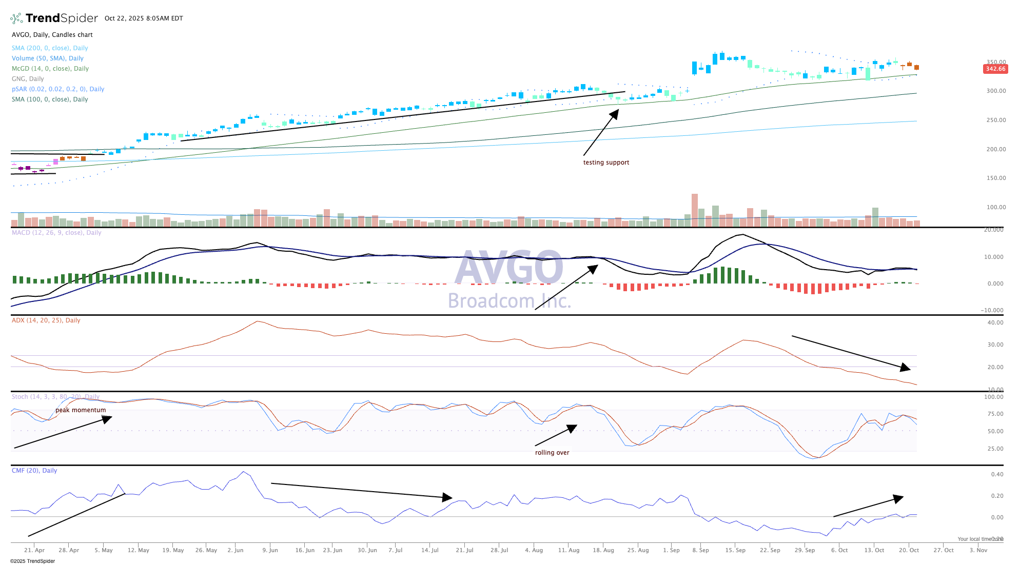 We have been watching Broadcom (AVGO) from the Bullpen and continue to believe it will eventually become a member of Pro Portfolio. However, much like many other tech/chip names these strong trends are very difficult to get on board.