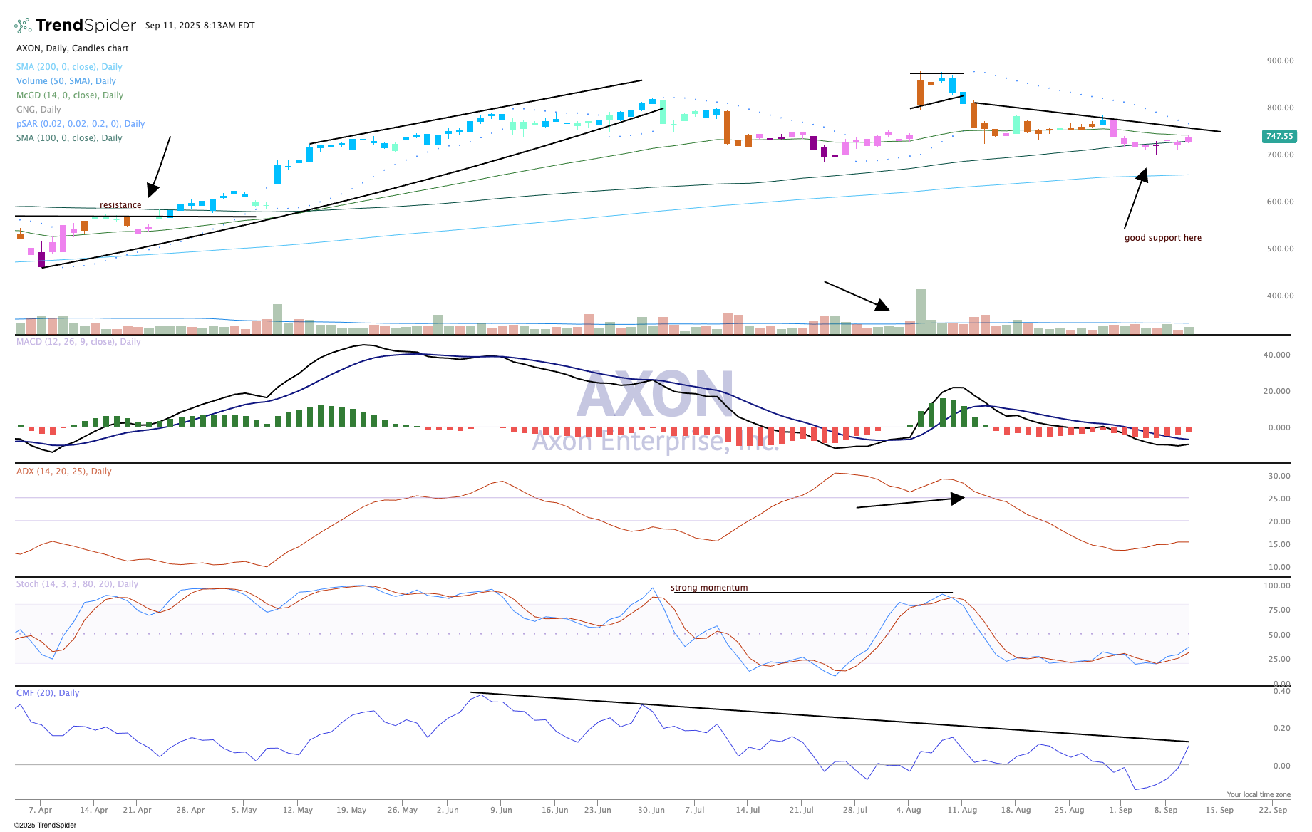 Axon Enterprise AXON has little news to move on over the next couple of months, and after that monster gain following earnings in August it is entitled to a rest. Big money players like to see a "calm" period for a stock like Axon, where they can quietly jump in and buy shares while hardly being noticed. It is at these time that the biggest and best gains are made, so following the big money is a prudent move.
