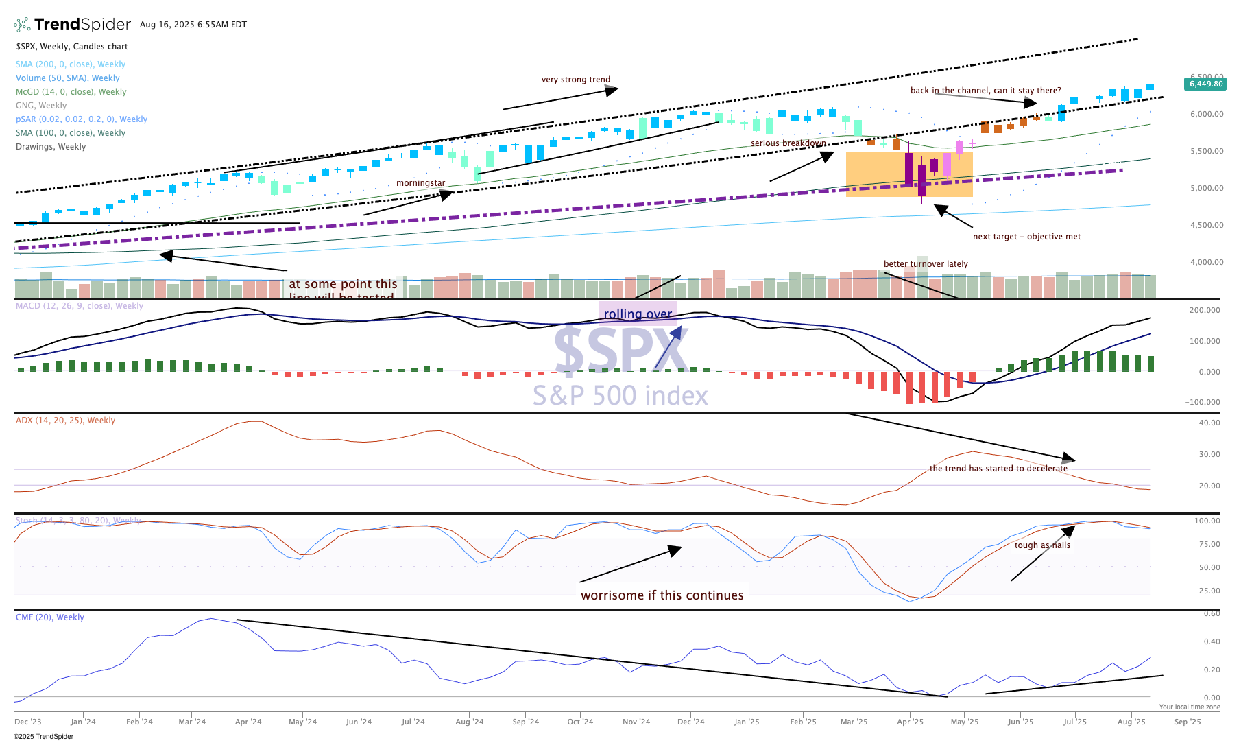 One impressive indicator is at the bottom, the Chaikin money flow. Higher highs and higher lows tell us money is at least flowing here, if not at a rapid pace. That is bullish.
