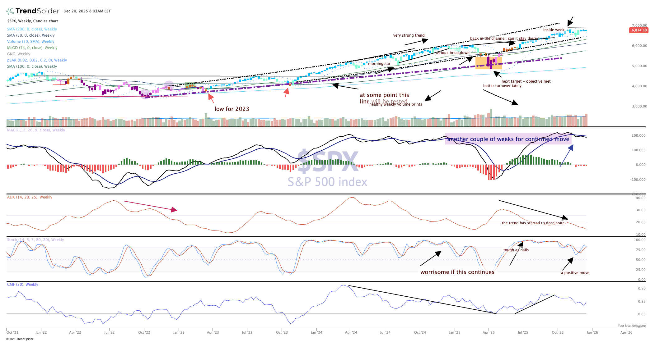 It was a slightly down week for the S&P 500 but it could have been worse without the stick save from Friday. The Industrials and small-caps fared much worse than the other indexes for the first time in weeks, hinting maybe the rotation is back on to the Mag 7 names and other mega-caps. Regardless, the S&P 500 is poised for a late-year run at the all-time highs, which lately has been difficult to achieve.