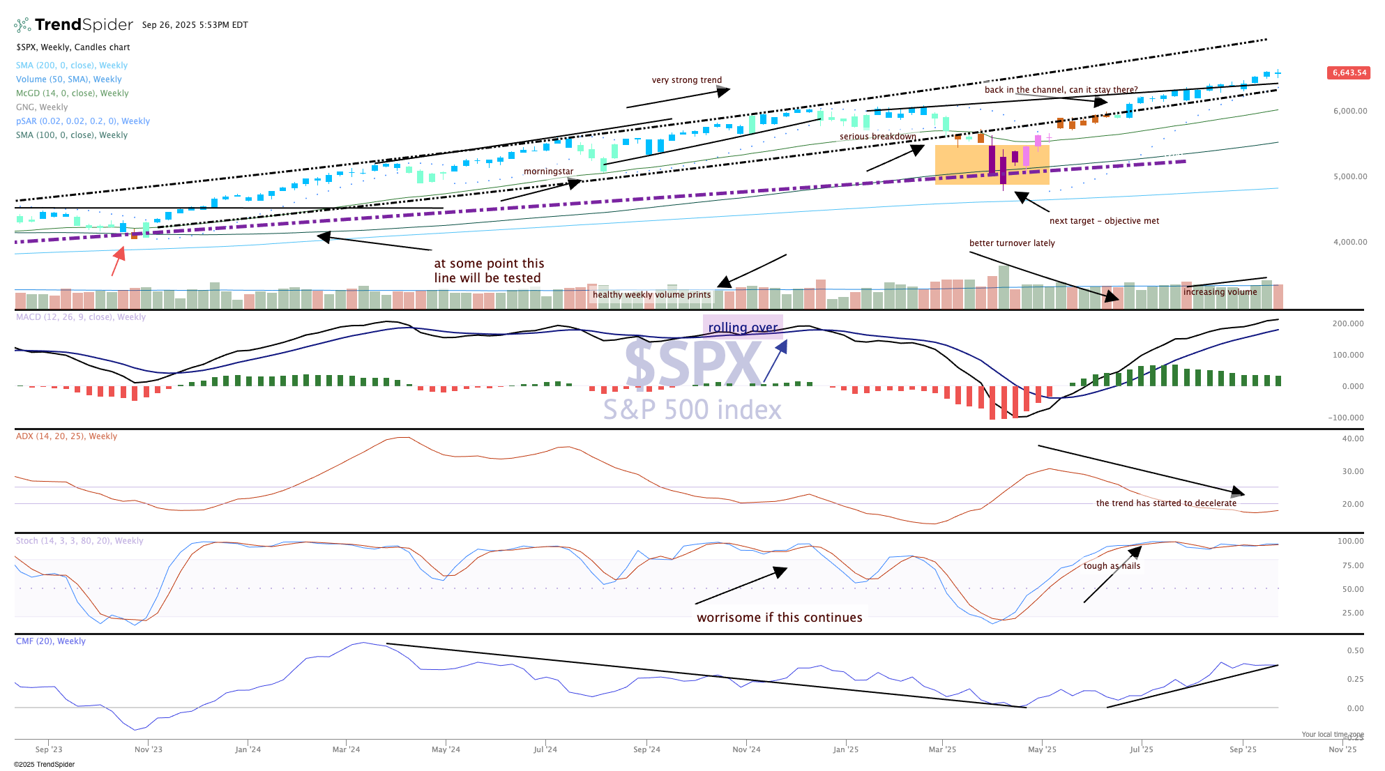 Money flow and MACD (moving average convergence/divergence) continue to lead the stock market higher, and as we move into a new month and quarter this week we should remember stocks tend to do very well during the last three months of the year IF the markets are higher in the first nine months, which is the case in 2025.