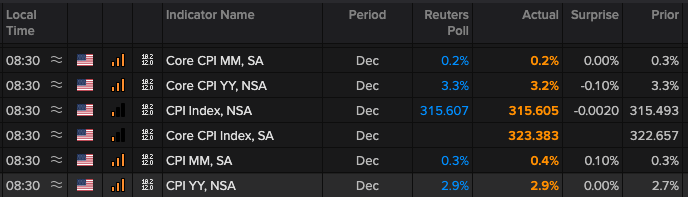 On a year-over-year basis, core CPI came in at 3.2% versus the expected 3.3% and the 3.3% reading for November. Shifting to a sequential basis, core CPI for December came in at 0.2%, matching the market forecast and inching down from November’s 0.3% reading.