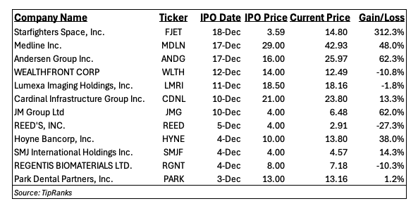 A lot can happen between now and then, but we will share that, among the December 2025 IPO class, given our Safety & Security investing theme, we are intrigued with Starfighters Space (FJET) shares. The company operates the world's only commercial fleet of flight-ready F-104 supersonic aircraft and is the only commercial company with the capability to fly at MACH 2 while launching payloads into space. Starfighters also aims to benefit from hypersonic research in commercial and defense applications.