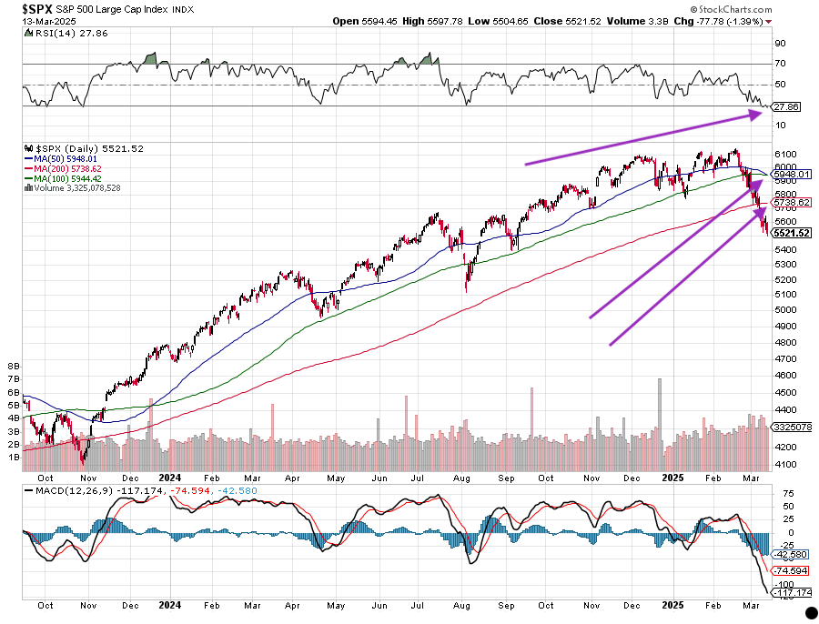 Let’s remember though that, while a market rebound would be welcomed, other issues, including upcoming tariffs, next week’s Fed policy comments and questions over June quarter guidance could limit the market’s near-term gains. Clearly seen in the chart below, the S&P 500 will face some initial resistance at the 200-day moving average (5,738.62) and again at the almost intersecting 50-day and 100-day moving averages.