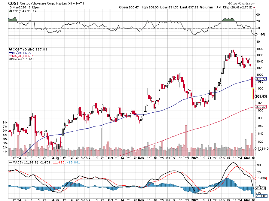 Last Thursday, we shared that if COST shares drift back to the 50-day moving average near $988, that would be a nice pickup point, but a more compelling one would be closer to $960.