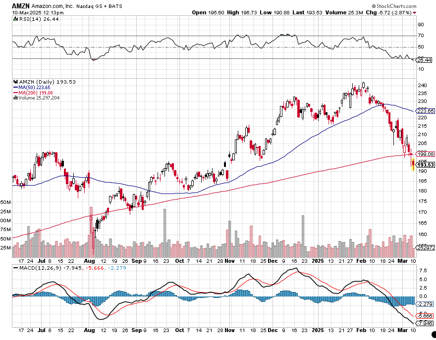Turning to Amazon, those shares are oversold, and as we can see in the chart below, their relative strength index is below 27. Like our comment above for COST shares, given the inflation data coming at us over the next few days, the smarter move for those underweight AMZN shares relative to the Portfolio is to wait until the market has put a firm bottom in. A few upside dollars might be lost, but that’s far better than being head faked in an anxiety-filled market.