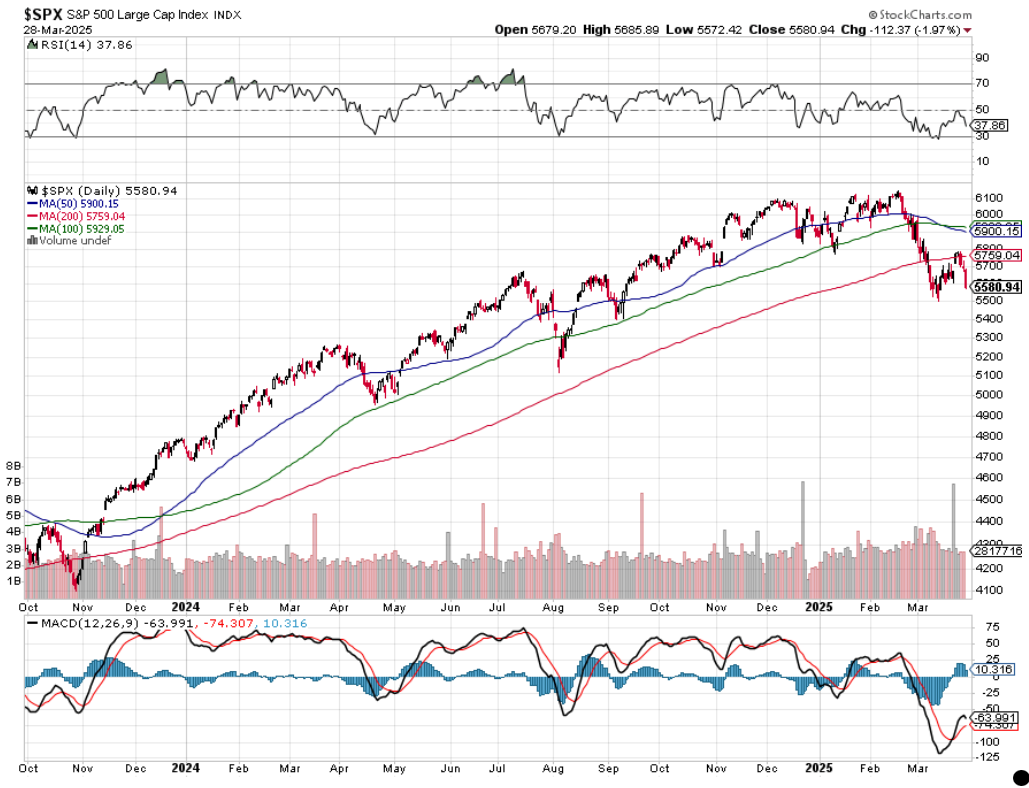 Multiple factors have come together in the last two weeks to serve as catalysts for what is shaping up to be that re-test. These include renewed worries not only about the impact of announced Trump tariffs and pending reciprocal ones we’ll learn more about next week, but also the potential cumulative responses from Canada, China, and the European Union.