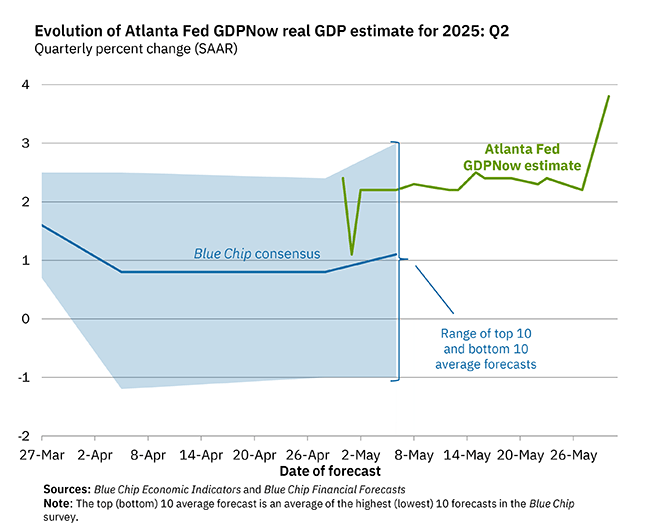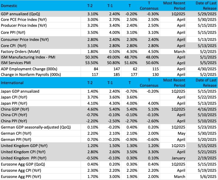 First, the onslaught of May economic data will refresh expectations for the Service sector, inflation pressures, and job creation. Those data points outlined below will lead the Atlanta Fed and other central banks to revisit current-quarter GDP models that are so far based only on April data. With each layer of new data, we’ll get a more refined look at the true picture of the economy, warts and all.