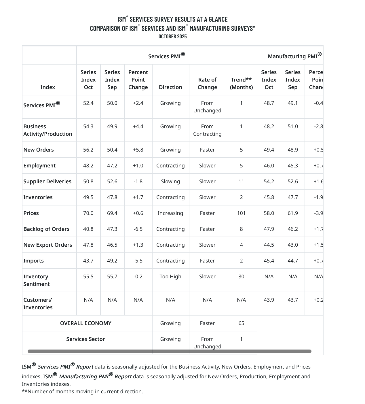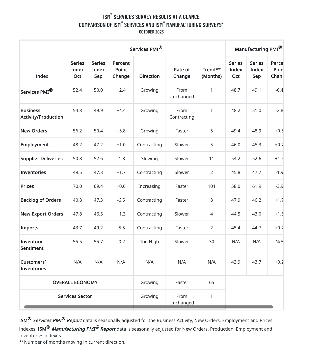 What can we surmise from today’s October Employment Report from ADP and ISM’s October Service PMI data? Job creation improved to its best level in the last three months, but it was still modest compared to earlier this year. Wage pressure didn’t accelerate, per ADP’s findings, compared to September, but with year-over-year path growth for job stayers remaining at 4.5% in October and at 6.7% for job changers, employers are still paying up for the jobs they are filling.
