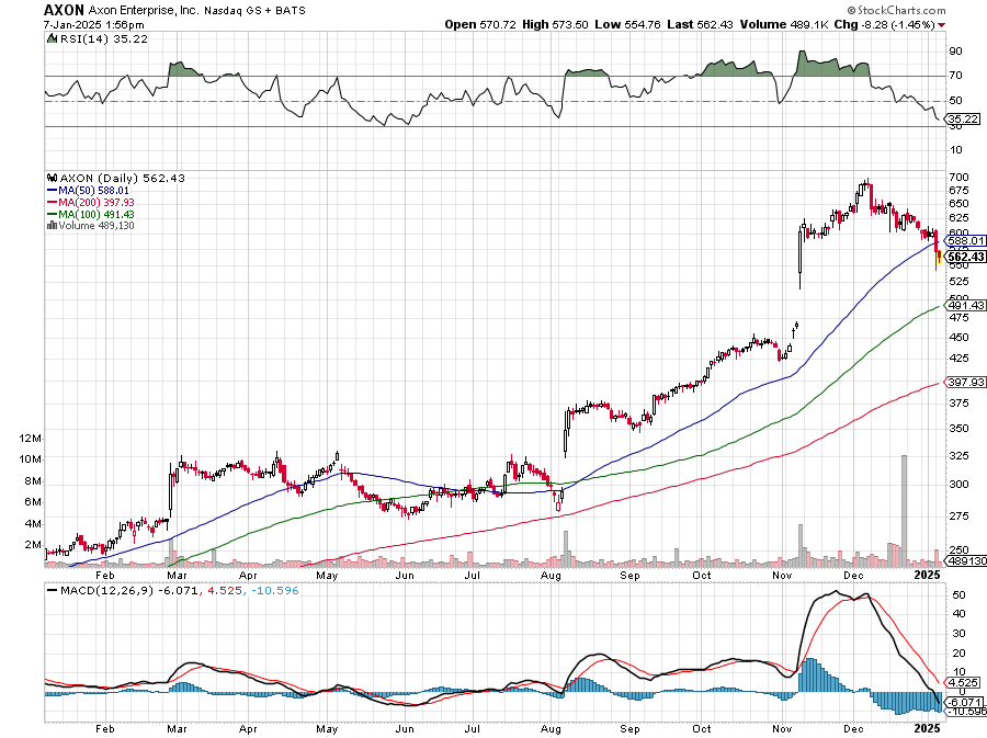 While we don’t expect Axon to make an appearance at CES 2025, we do see its business benefitting from the incorporation and adoption of AI into its offerings. We touched on this several times in H2 2024, citing it as a potential growth driver in the coming quarters. That opportunity to drive revenue, pricing and EPS growth was one of the reasons Morgan Stanley upgraded AXON shares to Outperform in early December. When it made that move, Morgan slapped a $700 price target on the shares, which equates to a price-to-earnings growth multiple of 4.84x using consensus 2025 EPS figures.