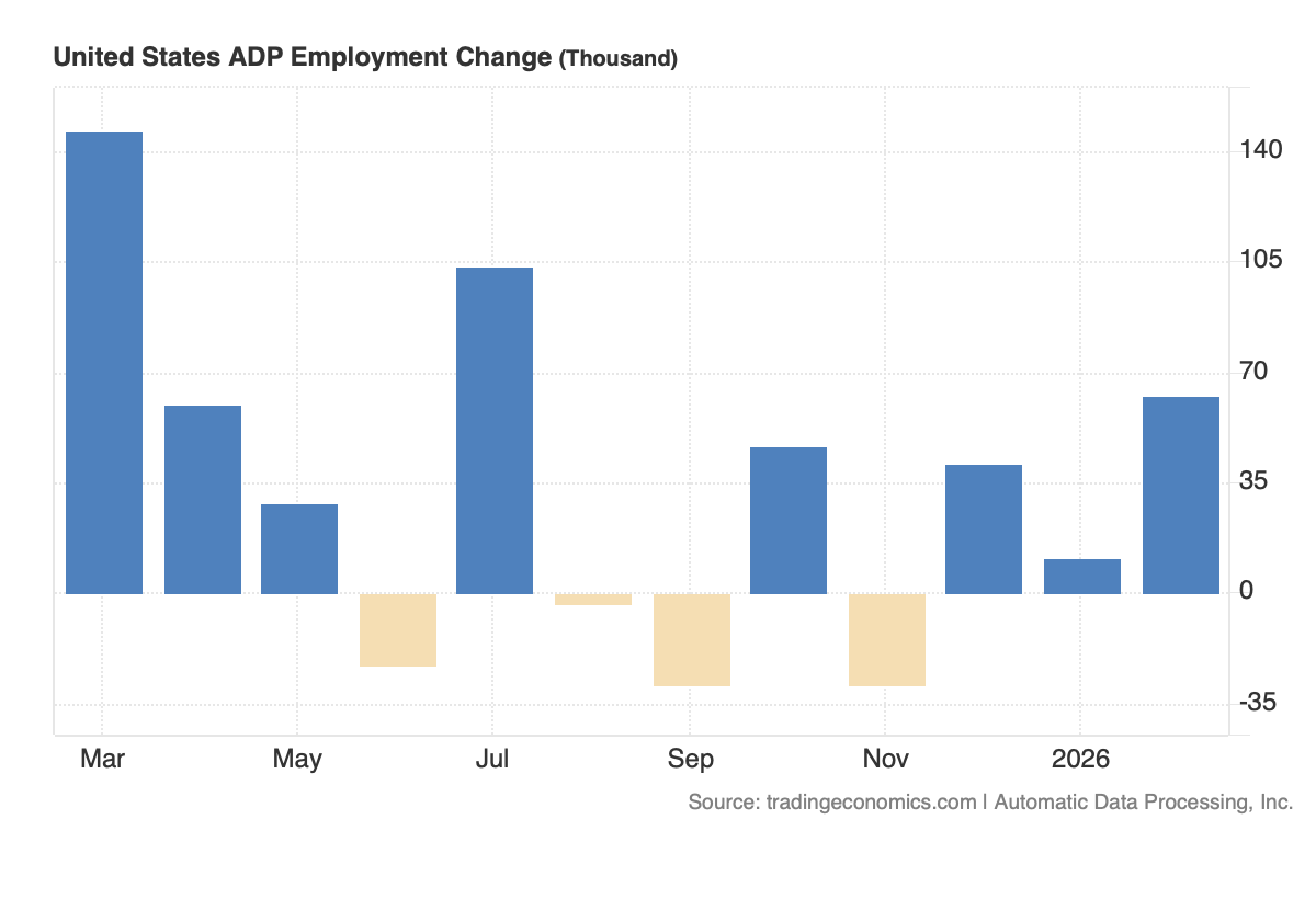 As we can see in the chart below, ADP’s findings for February job creation in the private sector accelerated, hitting the highest level in the last few quarters. The vast majority of the better-than-expected 63,000 jobs came from small businesses, but peering deeper into the figures we see Education and Health Service added the greatest number of jobs in February followed by Construction, while Professional Services and Manufacturing lost jobs.