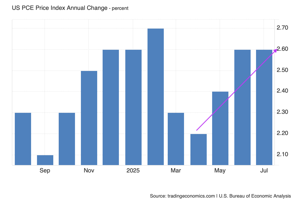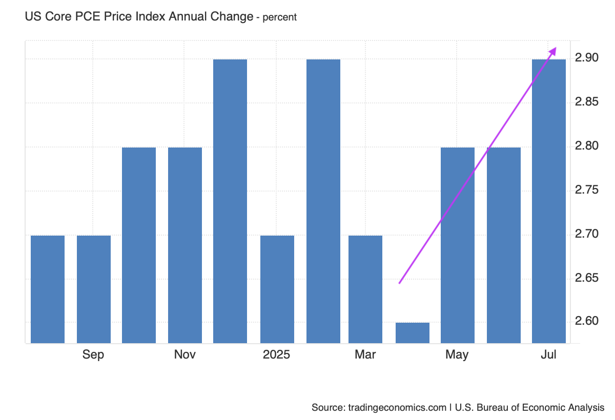 The closely watched core PCE Price Index figure for July ticked higher to 2.9%, again matching expectations. While some may sigh in relief because the July figure did not surprise to the upside like the July core consumer price index and July producer price index figures did, the direction of the core PCE Price Index over the last few months is clearly in a direction the Fed is not going to like.