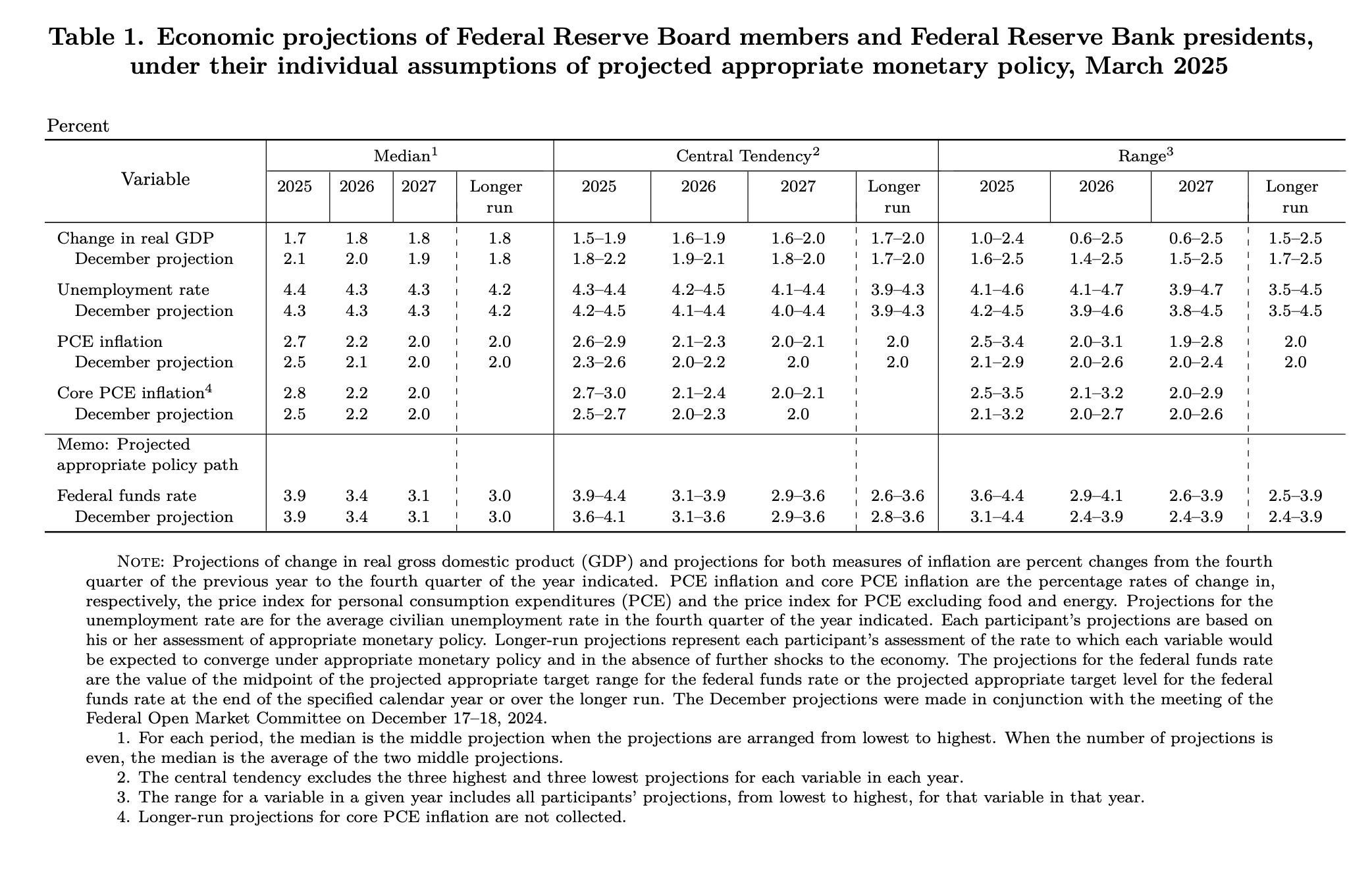 So GDP has slowed to 1.7% this year, down from 2.1%. I think no surprise, given some of the more recent data that we've seen. The unemployment rate in December, it was 4.3%, now for 2025, 4.4%. And the core PCE inflation has moved higher to 2.8%. Back in December, the Fed was looking for 2.5%.