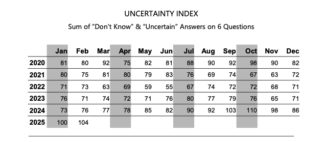 There are also reasons to question near-term business investment prospects. Tariff uncertainty for one, and the Atlanta Fed’s GDPNow model for the current quarter slipping into negative territory, for another. That helps explain why the Uncertainty Index found in the NFIB’s latest Small Business Optimism Index rose to its second-highest recorded level. As we’ve seen before, during periods of high uncertainty businesses, generally speaking, tend to pull back on hiring, spending, and investments. That’s another likely near-term headwind for the economy.